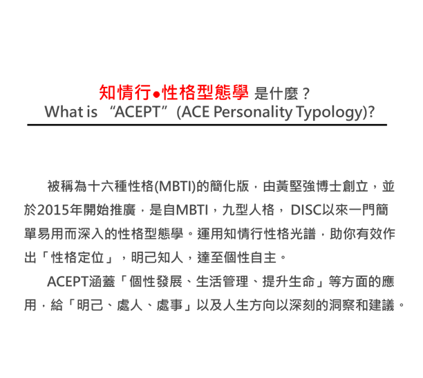 《知情行●性格型態學》發掘各類工作坊/培訓題材,結合性格分析,理論與實操並重!適合各類型學校及教育、培訓及商業機構舉辦。查詢:Whatsapp 93144195